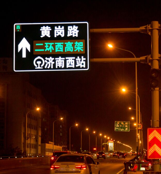 經常開車的朋友都知道,我們在路上行駛,除了要借助導航系統來指導到達目的地的行駛路徑,還需要通過及時查看交通標志(指路、禁令、警告等),以確認、了解相關道路信息、交通管制信息和交通危險源信息,故交通標志對我們日常駕駛出行至關重要。傳統交通標志又稱“逆反射交通標志”,是采用鋁版外貼反光膜制作而成,在夜晚或光照不佳的環境中,需要依賴汽車遠光燈照射才能被動發光,即“照射-反光、不照射—黑暗”簡單的邏輯。
