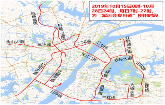 “軍運(yùn)會”交通管理措施自2019年10月15日0時(shí)起實(shí)施,至2019年10月28日24時(shí)止。