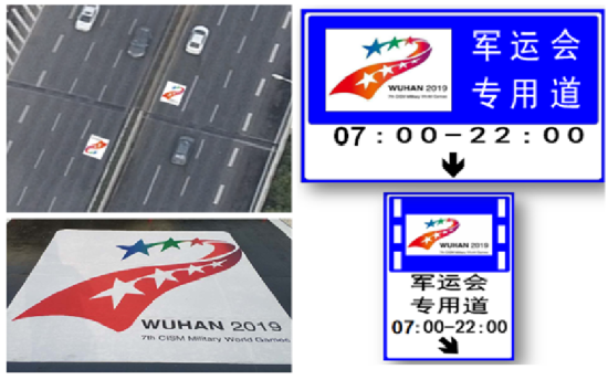 “軍運(yùn)會專用道”與“公交專用道”共車道時(shí),公交車輛可以通行。