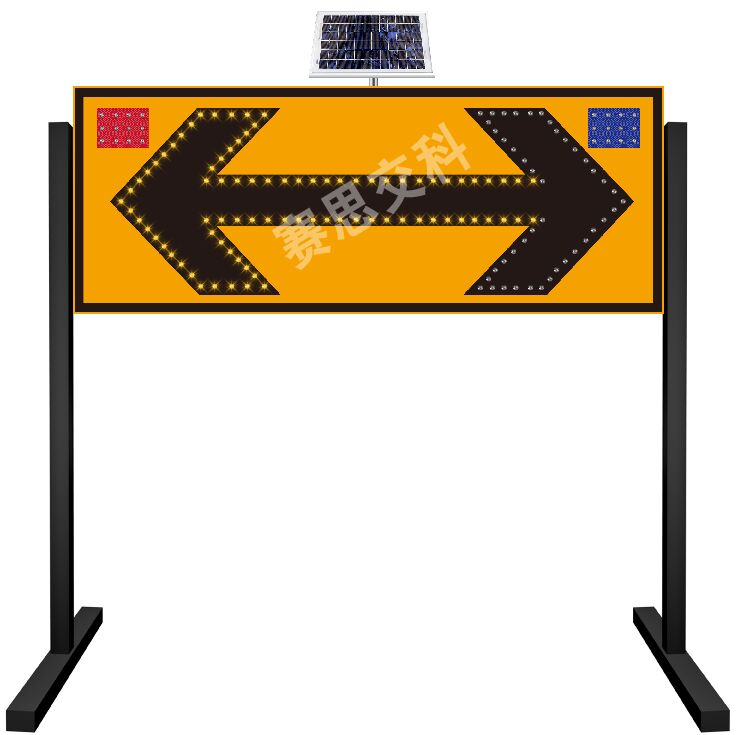 1、工藝描述:采用鋁板材質(zhì),左右各嵌入紅藍簡易爆閃燈,設置雙向箭頭標識,嵌入LED高亮發(fā)光管,采用太陽能供電方式,實現(xiàn)主動發(fā)光功能。