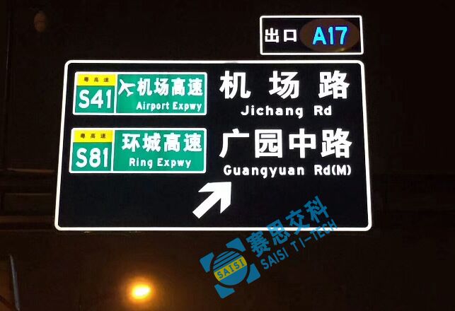 指路類道路交通發光標志牌,其主要功能為傳達道路方向、道路路名、道路位置、關鍵節點路距離等信息;其形狀主要為長方形或方形;其顏色:城市道路主要為藍底白色圖案;快速路、高速路為綠底白色圖案。該類標志,通常選用“半透面板型主動發光標志”、“全透面板型主動發光標志”等類型。
