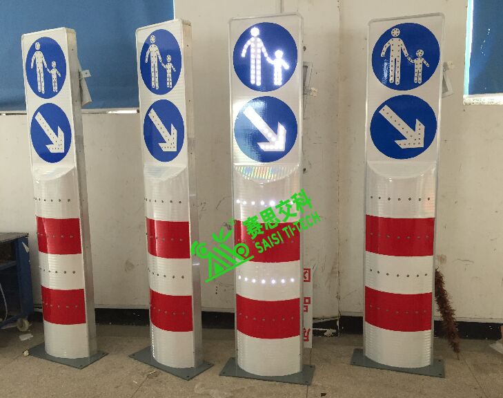 (二)高實用性。太陽能道口閃光警示柱,其通體為主動閃爍發(fā)光的LED燈珠,有效增益設(shè)備在夜間、惡略天氣中的識別率,既增強了警示效果,又提高了交通語言信息的遠距離視認性。其上部標志可以為:右下行、注意行人(兒童)、機動車與非機動車的路權(quán)指引、黃閃警示燈、禁止掉頭等標志圖案,款式多樣,能滿足多種危險場景需求。