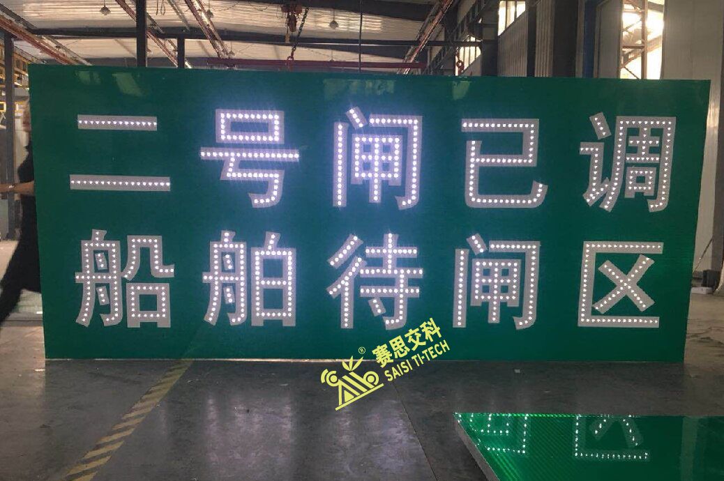 為提升禁航標志的遠距離視認性和警示性,通常都采用LED發光工藝,根據LED布點需要,通過數碼打控工藝,將標志版面均勻開孔,外嵌LED發光燈串,要求其燈色為黃色定光,通過設置必要的電阻、電容,來調節標志的亮度及均光性,夜間“×”型圖案顯示為黃色,以實現標志的主動發光特性。