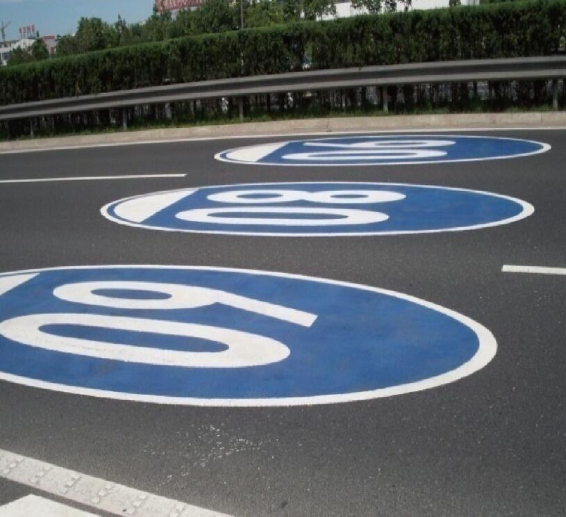5、建議在進入隧道入口通道及前方地面設置彩色熱熔預成型落地限速標志,落地標志上采用圖案和文字提示不同種類的車輛行駛方向,顏色均采用標準的交通色。彩色熱熔預成型落地標志與交通標志形成立體的交通指引模式。
